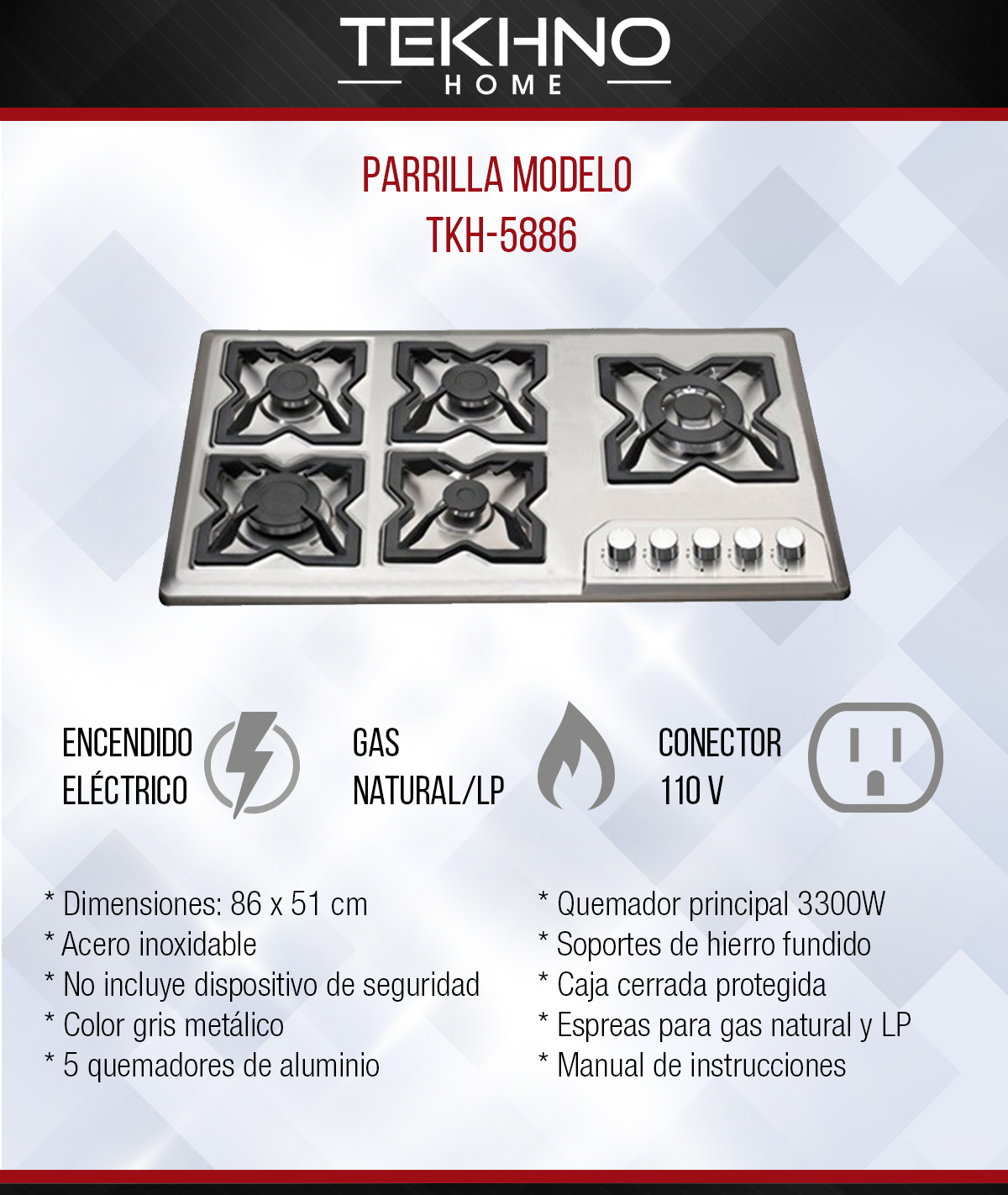 Parrilla de gas 5 quemadores