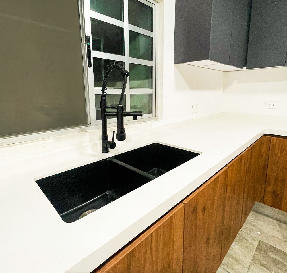 UNA DE LAS OPCIONES MÁS POPULARES PARA CUBIERTAS DE COCINA Y BAÑO GRACIAS A SU RESISTENCIA, FÁCIL MANTENIMIENTO Y VARIEDAD DE DISEÑOS. OFRECEMOS UNA SELECCIÓN DE PLACAS DE CUARZO DE ALTA CALIDAD, IDEALES PARA CUALQUIER ESTILO DE PROYECTO, DESDE RESIDENCIAL HASTA COMERCIAL.